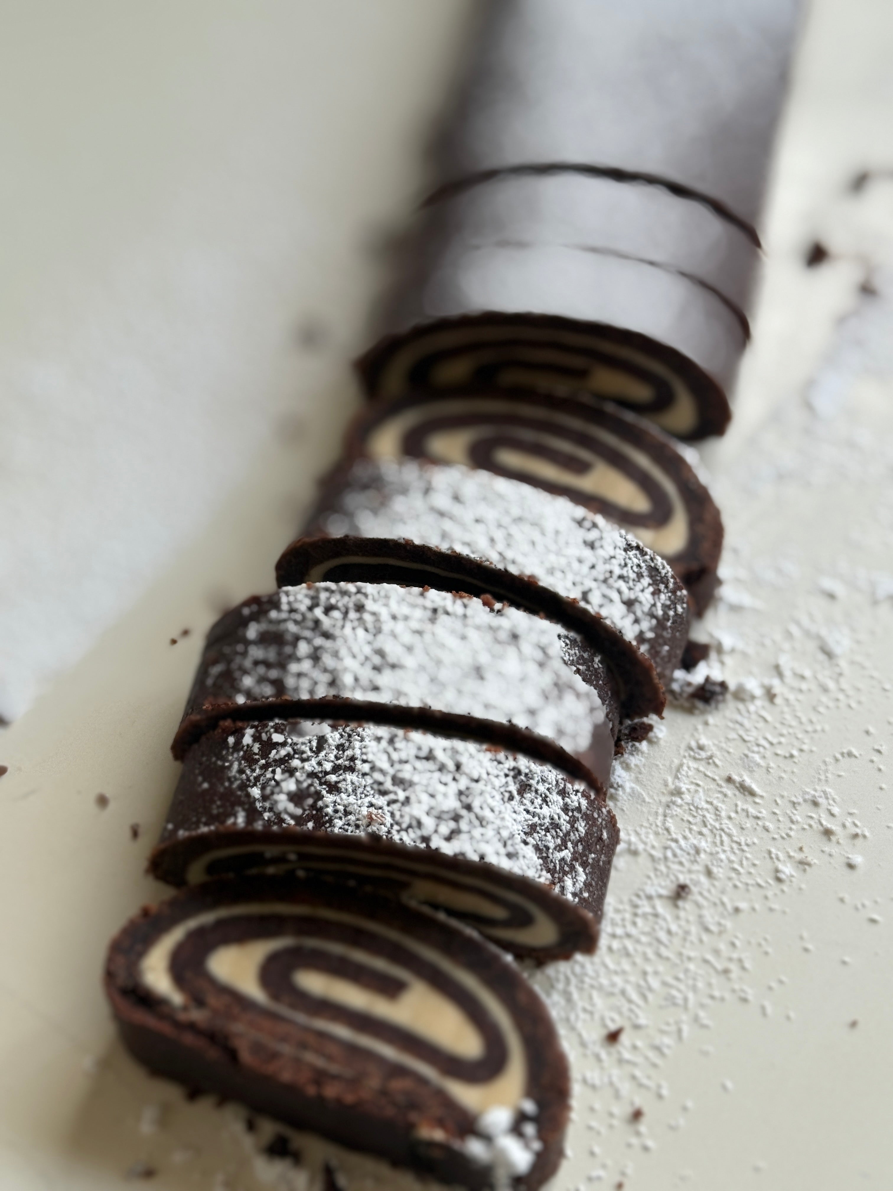 11. לאחר ההקפאה חותכים בעזרת סכין גדולה וחדה לעוגיות באיזה עובי שתרצו. שומרים בטמפרטורת החדר או במקרר בקופסה אטומה.