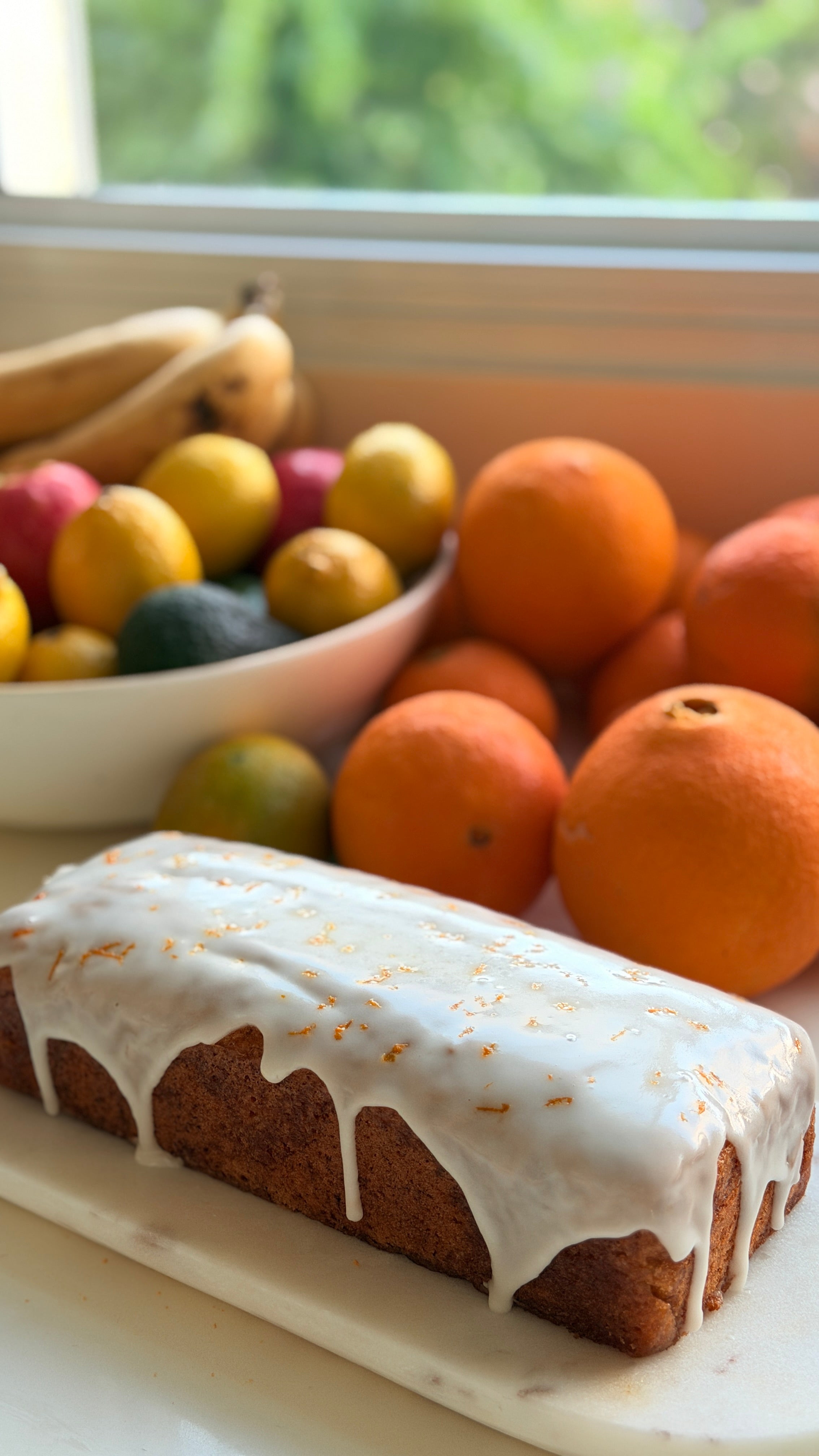 15. כשהעוגה קרה- מערבבים יחד אבקת סוכר ומיץ תפוזים ושופכים את הגלייז על העוגה. ניתן לקשט בגרידת תפוז.